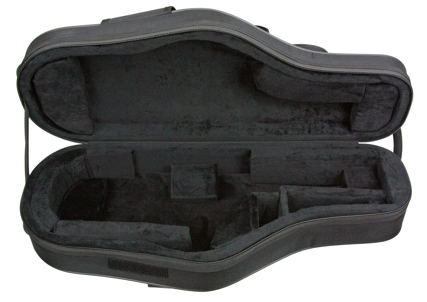 - Soft internal foam compartments securely protect neck and mouthpiece