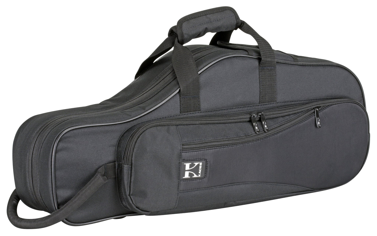 The Kaces Lightweight Hardshell Alto Sax Case offers substantial protection for your saxophone, with ample features, ergonomic design, and reliability at a very affordable price. Made of high density reinforced hard EPS foam, the case is strong but lightweight. The exterior is covered in a rugged 600D exterior, with luggage grade #10 zippers and heavy duty pull tabs designed to last. The case also features a wrapped webbing handle, removable backpack straps with metal hardware, an additional "subway style" handle for easy transport, soft foam interior compartments that securely hold the neck and mouthpiece, a large exterior storage pocket, and a front pocket organizer provide plenty of room for accessories.