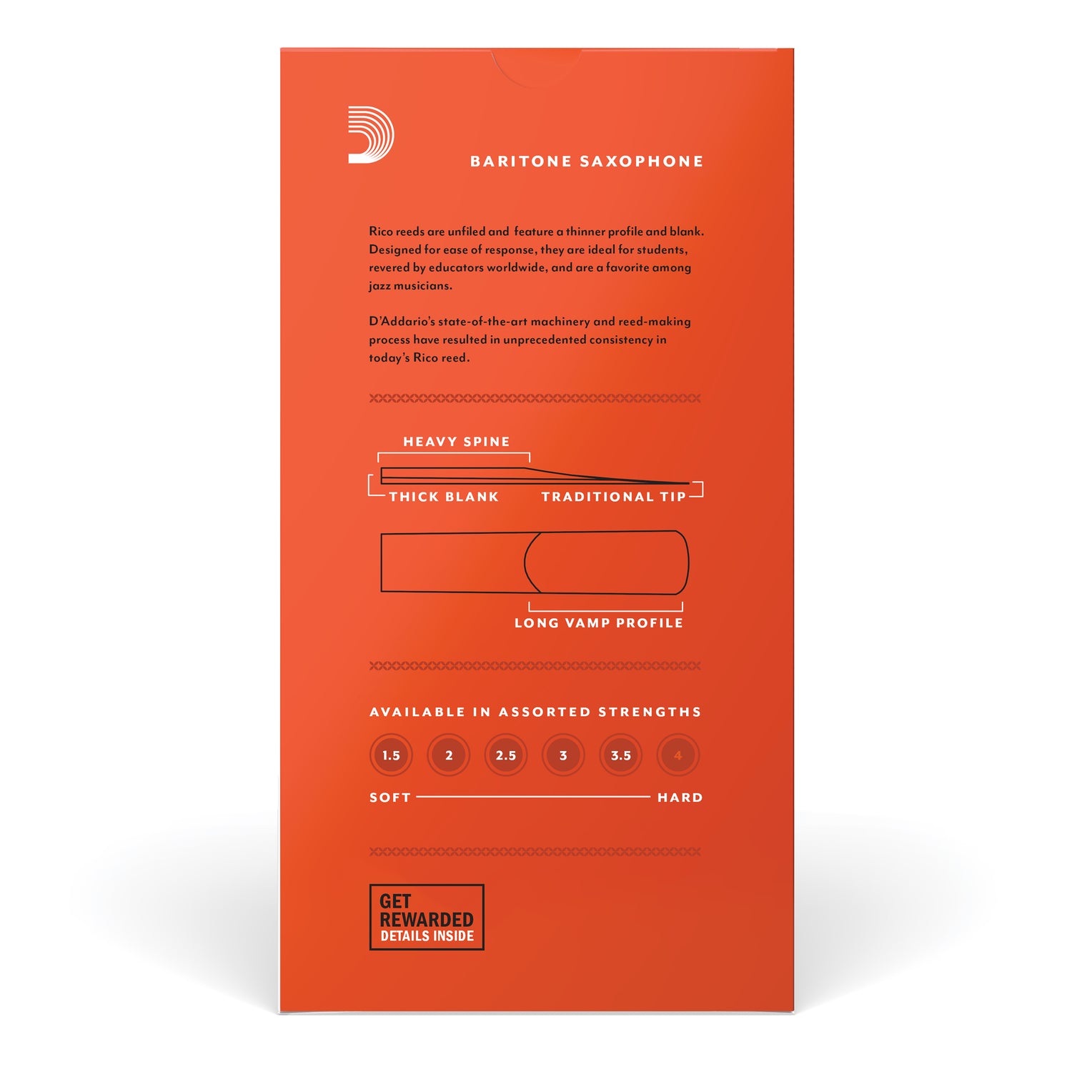 Rico By D'Addario Baritone Sax Reeds, Strength 2.0, 25-Reeds