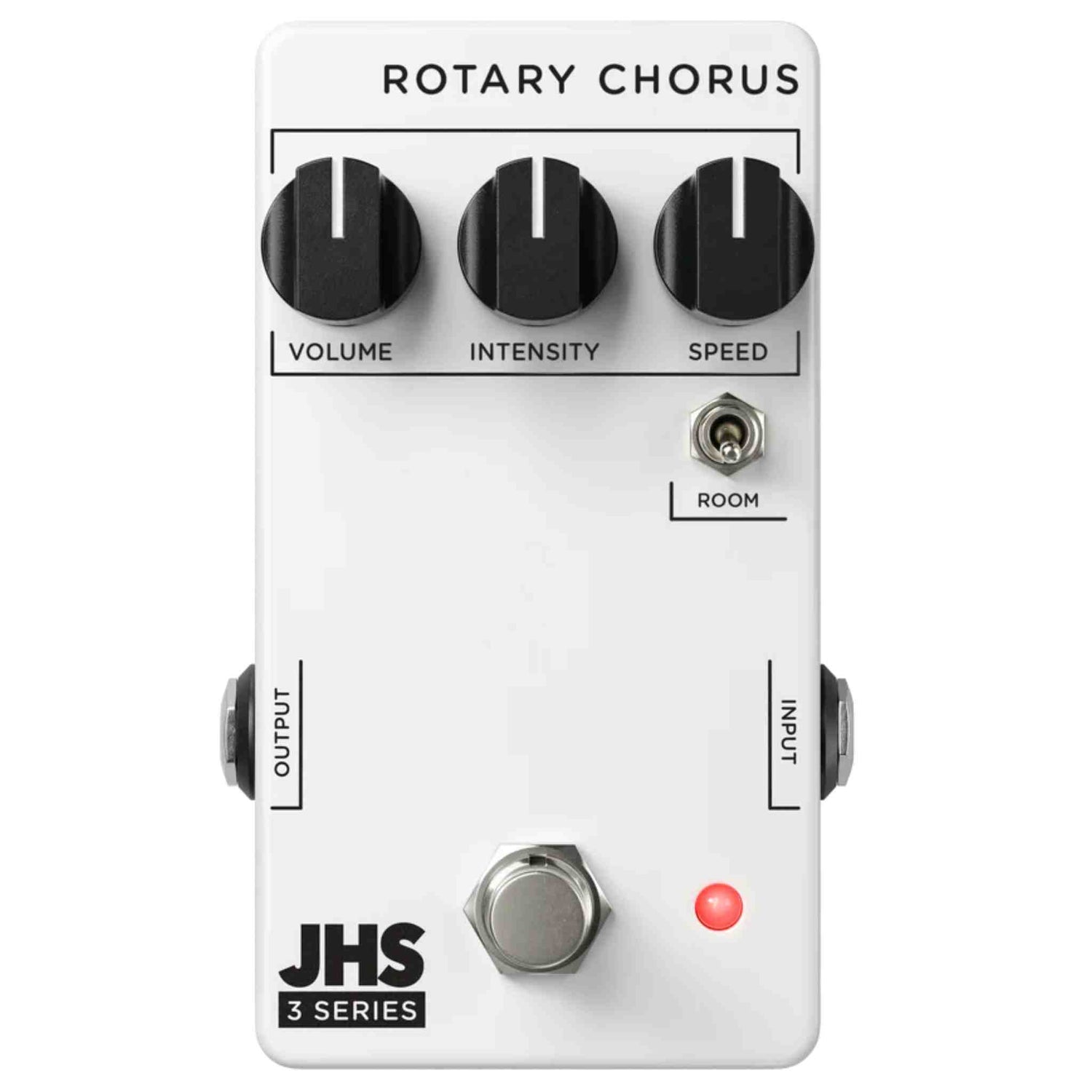Each pedal has three simple controls and one toggle that offer a wide range of sounds, perfect for beginners and professionals alike. The JHS Pedals 3 Series will inspire your playing and help you explore new sounds at a totally approachable price point. The rotary effect was one of the earliest modulation effects to hit the music scene. Intensity determines the modulation depth. Speed lets you control how fast the simulated speaker “spins.” When you turn the Room toggle on (up position), it adds a roomy, reverb ambiance to the sound, much like the ambient “room microphone” sound. CONTROLS: Volume, Intensity, Speed, and Room.