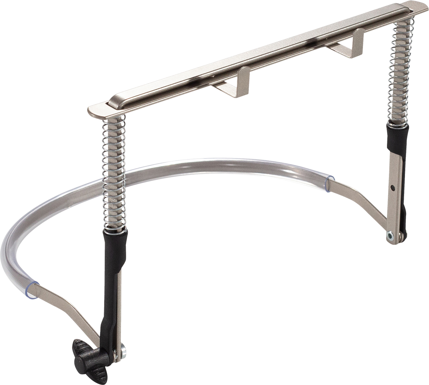 This newly designed harmonica holder is compatible with all Hohner 10 and 12 hole Diatonic model harmonicas as well as most Tremolo and Octave instruments. It features a single wingnut to lock the harmonica into position while the new plastic guide prevents the spring from binding giving the player smooth action while switching harmonicas.