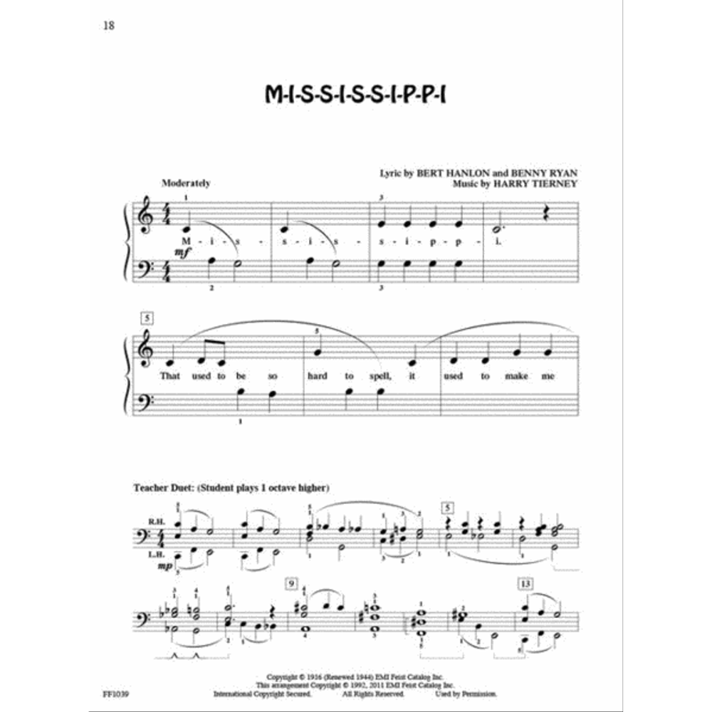 PlayTime Piano Kids’ Songs – Level 1 by Nancy and Randall Faber is a delightful early-level collection from the Faber Piano Adventures® series. Designed to make learning fun, this book features familiar and humorous tunes that capture children’s imaginations while reinforcing key reading and rhythmic skills. Each piece is arranged in simple hand positions, with clear fingering to guide beginners as they learn note names and intervals. Perfect for lessons, home practice, or recitals, these songs make piano study both educational and entertaining for young learners and parents alike.