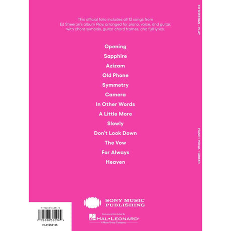Regular price $32.99Unit price /UnavailableLow stock (2 units)Ed Sheeran - Play - Piano, Vocal, Guitar - Songbook