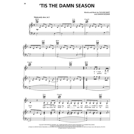 Regular price $24.99Unit price /UnavailableLow stock (2 units)Taylor Swift - Folklore - Piano, Vocal, Guitar - Artist Songbook