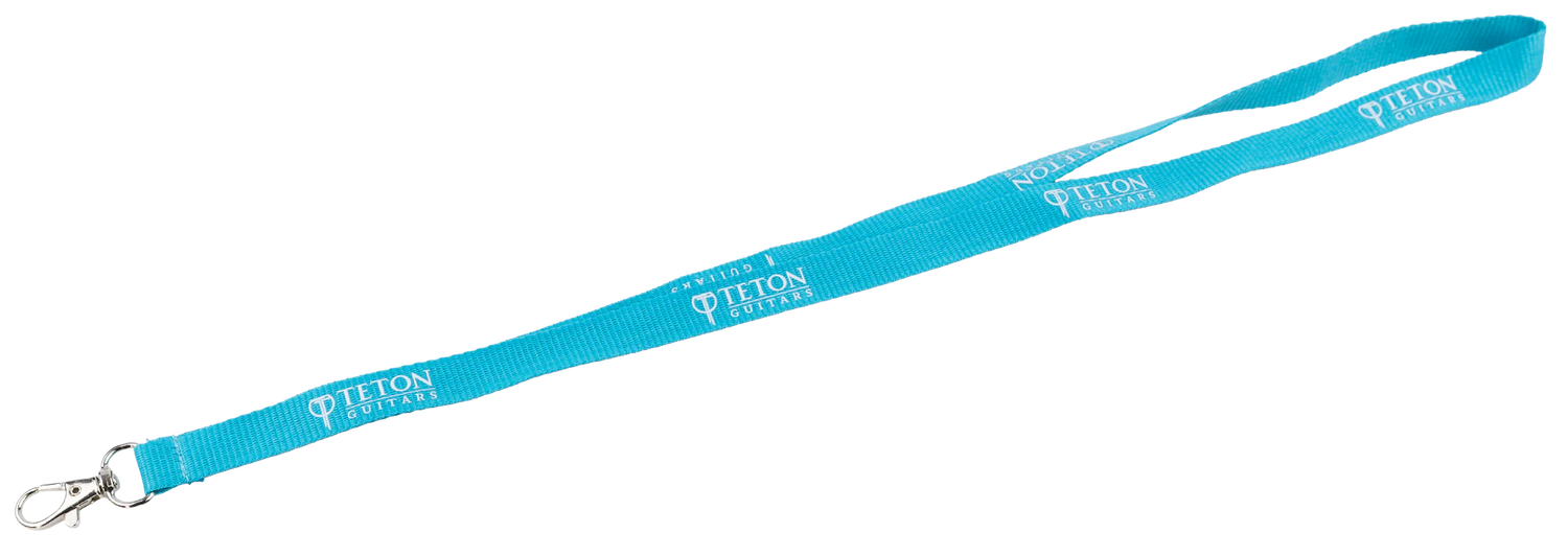 Hang your keys, badge, or any other accessories in style with a Teton Guitars teal lanyard. The lobster claw end makes attaching and releasing quick and easy.
